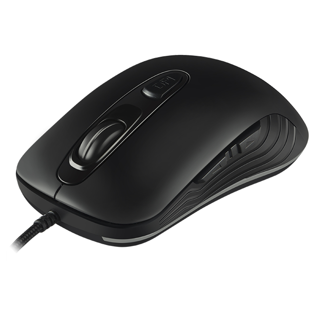 Разрешение мыши может достигать 4800 DPI и изменяться буквально «на лету» с помощью специальной кнопки на верхней части корпуса. Даже в самый напряженный момент игры у пользователя есть возможность одним движением перейти к удобному и эффективному сочетанию скорости перемещения и точности позиционирования указателя. Всего кнопок у манипулятора шесть, плюс нажимаемое колесико. Часть из них можно программировать с помощью специального ПО, в том числе – запускать их нажатием созданные заранее макросы, что серьезно расширяет возможности геймера внутри игрового процесса. Нельзя не упомянуть и боковые клавиши навигации «вперед» и «назад», которые пригодятся не только в играх, но и при использовании браузера, офисных приложений и так далее.