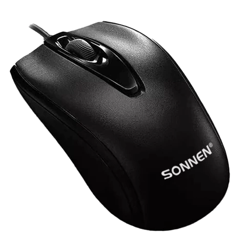 Мышь проводная SONNEN М-713, USB, 1000 dpi, 2 кнопки + колесо-кнопка, оптическая, черная, 512637