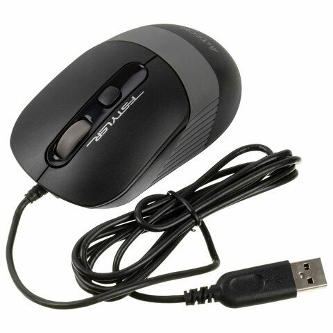 В корпусе проводной мыши A4TECH FStyler FM10 – 4 кнопки и оптический светодиодный сенсор, функционирующий с разрешением до 1600 dpi. За счет матового покрытия пластика аксессуар не скользит в ладони.
