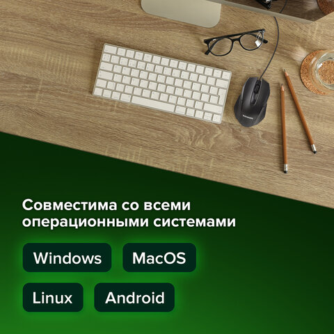 На симметричном корпусе, современного офисного дизайна мыши расположены 2 клавиши + колесо-кнопка. Разрешение оптического сенсора - 1000 dpi. Корпус выполнен из ударопрочного ABS-пластика черного цвета. Подключение через USB-разъем. Длина кабеля - 1,2 м. Размеры мыши: 95х125х45 мм. Вес - 0,09 кг.