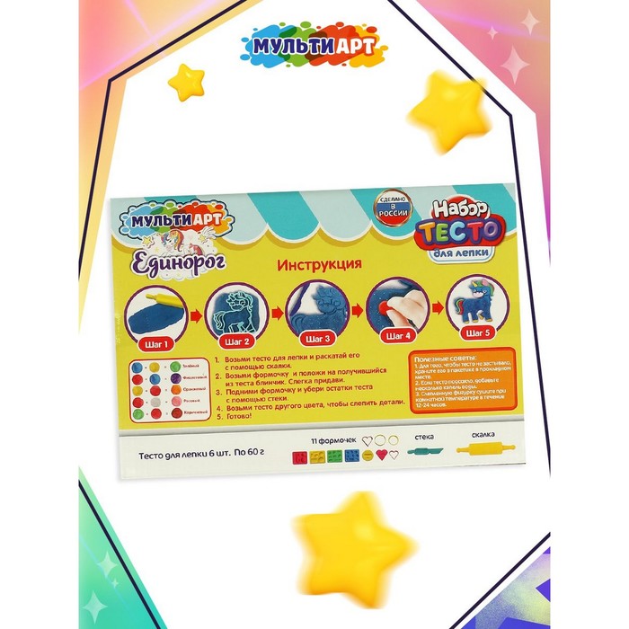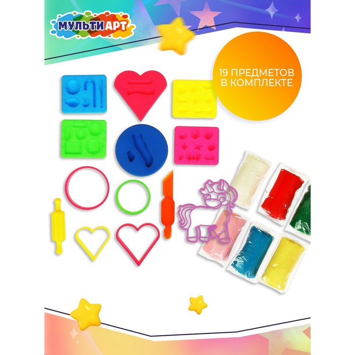 Тесто для лепки «Буба», 6 цветов, 6 формочек