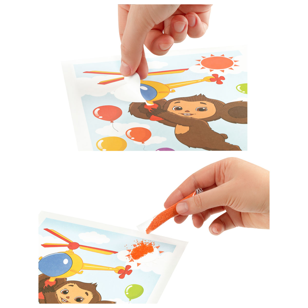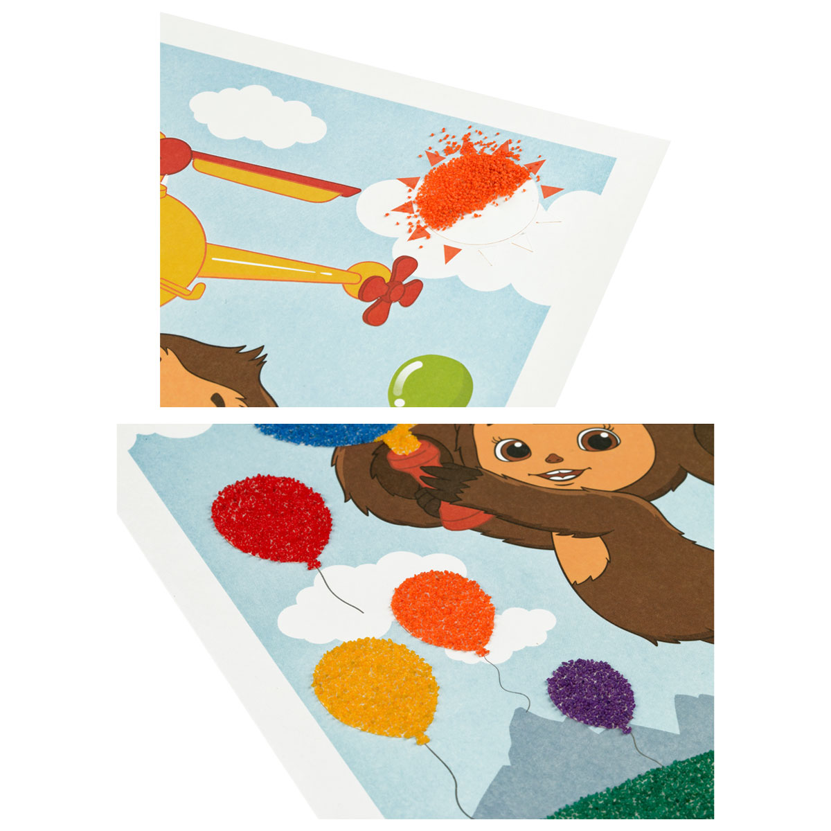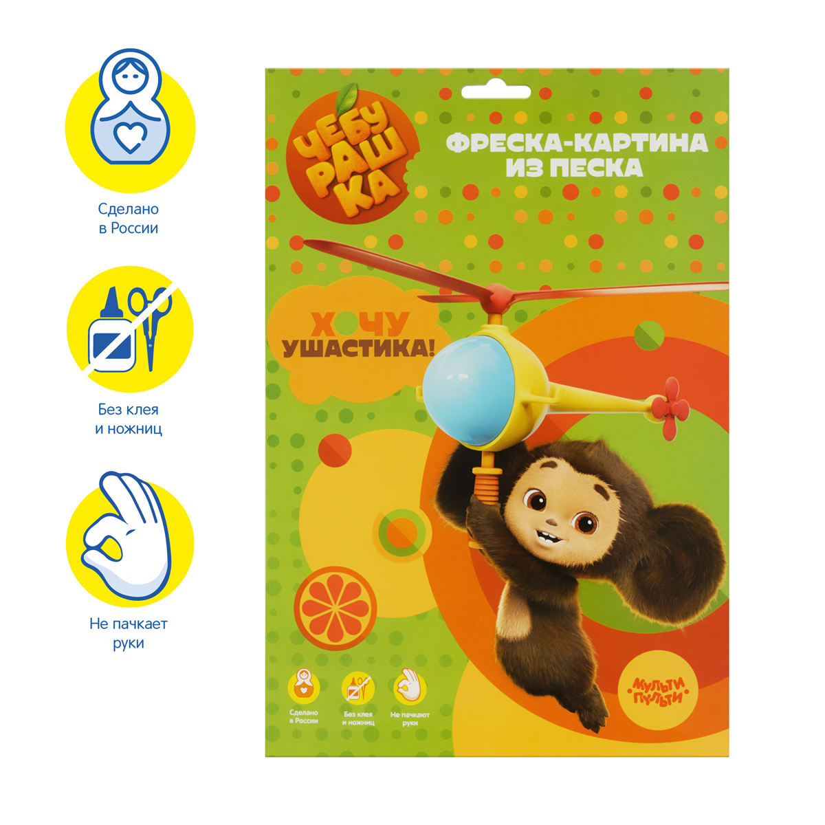 Набор для детского творчества «Мульти-Пульти» серии «Чебурашка» позволит ребёнку от 4-х лет создать яркую и оригинальную картину. Интересная техника «засыпки» фрески цветным песком сделает творческий процесс увлекательным и веселым, научит малыша аккуратности и вниманию, способствует развитию мелкой моторики. Входящая в набор рамка толщиной 2 мм из кашированного изолона придаст законченный вид картине. Готовая работа может стать замечательным подарком, сделанным своими руками.<br/>Состав цветной песочной фрески для детей:<br/>1. подложка на самоклеящейся основе с напечатанным рисунком 20,5х29 см;<br/>2. заготовка для рамки (кашированный изолон 2 мм);<br/>3. цветной песок 6 цветов.<br/>Внимание!<br/>1. Использовать набор только под непосредственным наблюдением взрослых.<br/>2. Последовательность и техника работы с песком подробно описана на упаковке.<br/><br/>• Размер: 20,5*29 см;<br/>• Количество цветов: 6;<br/>• Возраст: от 4-х лет.