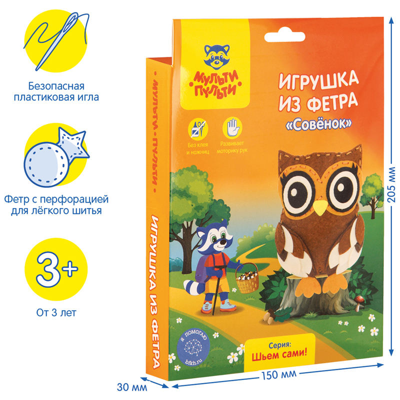 Набор для шитья игрушки ТРИ СОВЫ "Совушка", картонная коробка