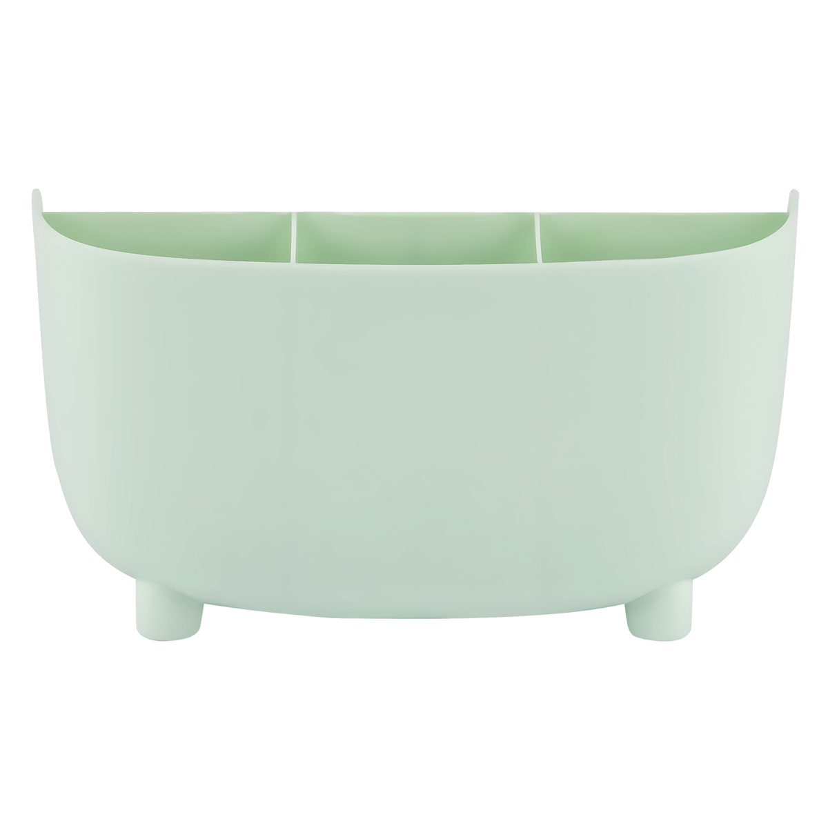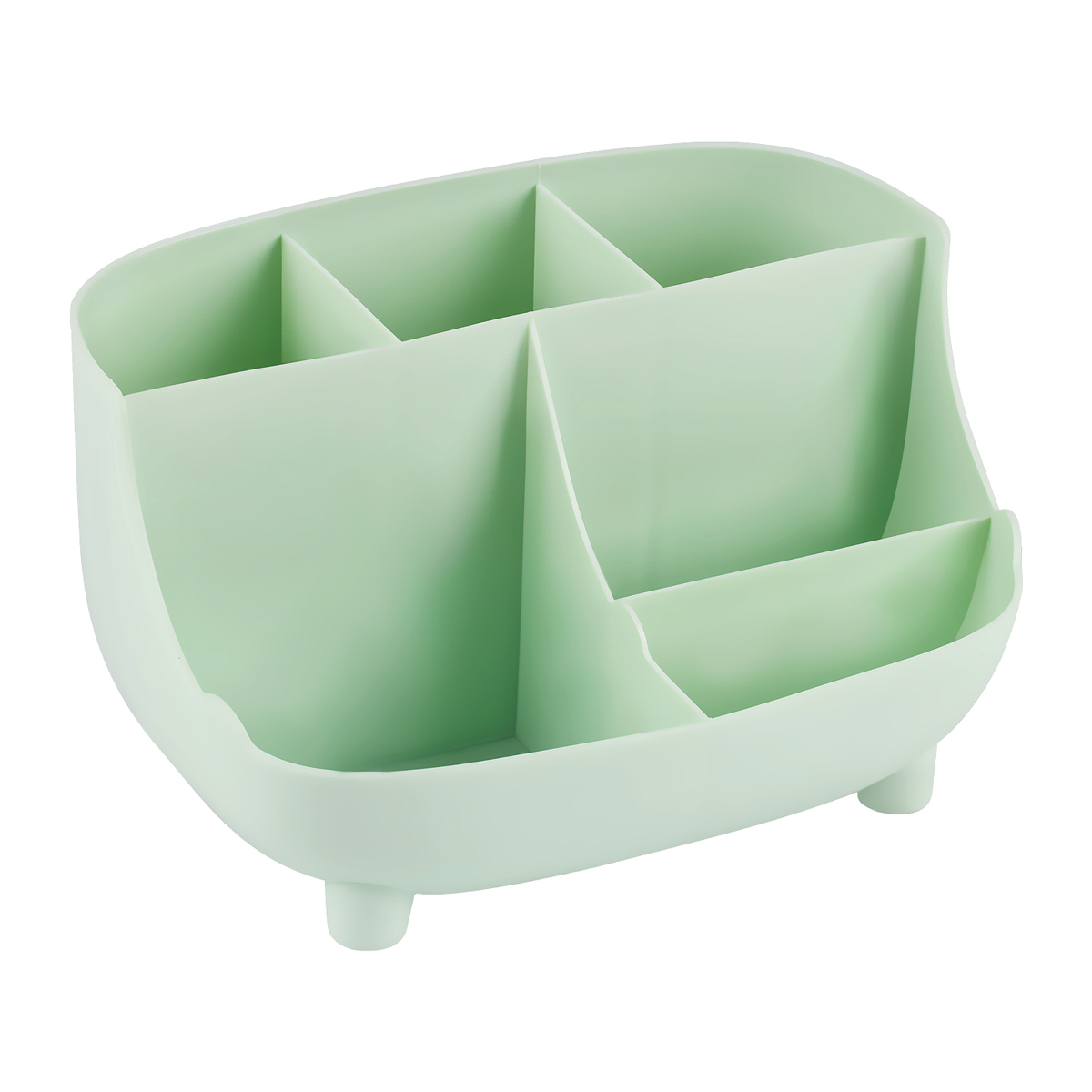 Настольная подставка MESHU в мятном цвете предназначена для хранения пишущих принадлежностей и канцелярских мелочей. Размер – 19*14*11 см. Изделие изготовлено из пластика и имеет 6 отделений. Подставка нежного мятного цвета отлично впишется в любое рабочее пространство и станет милым предметом интерьера. Упакована в ОПП пакет с европодвесом.