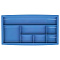 Настольная подставка СТАММ предназначена для хранения канцелярских принадлежностей и бытовых мелочей. Изделие размером 18,2*35,1*2 см подходит для размещения в ящике рабочего стола. Имеет 7 отделений разных размеров. Подставка изготовлена из качественного полистирола. Цвет изделия: голубой.<br/>• Вид: настольная подставка;<br/>• Материал: полистирол;<br/>• Количество отделений: 7;<br/>• Размер: 18,2*35,1*2 см;<br/>• Цвет: голубой.
