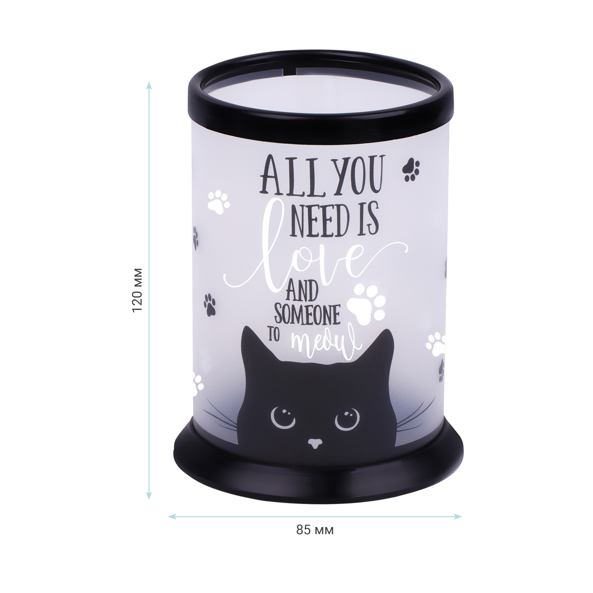 Подставка-стакан MESHU Black Cat в стильном дизайне предназначена для хранения пишущих принадлежностей. Размер круглой подставки – 8,5*12 см. Подставка изготовлена из пластика. Упакована в ОПП пакет с европодвесом. Схема сборки подставки указана на упаковке.