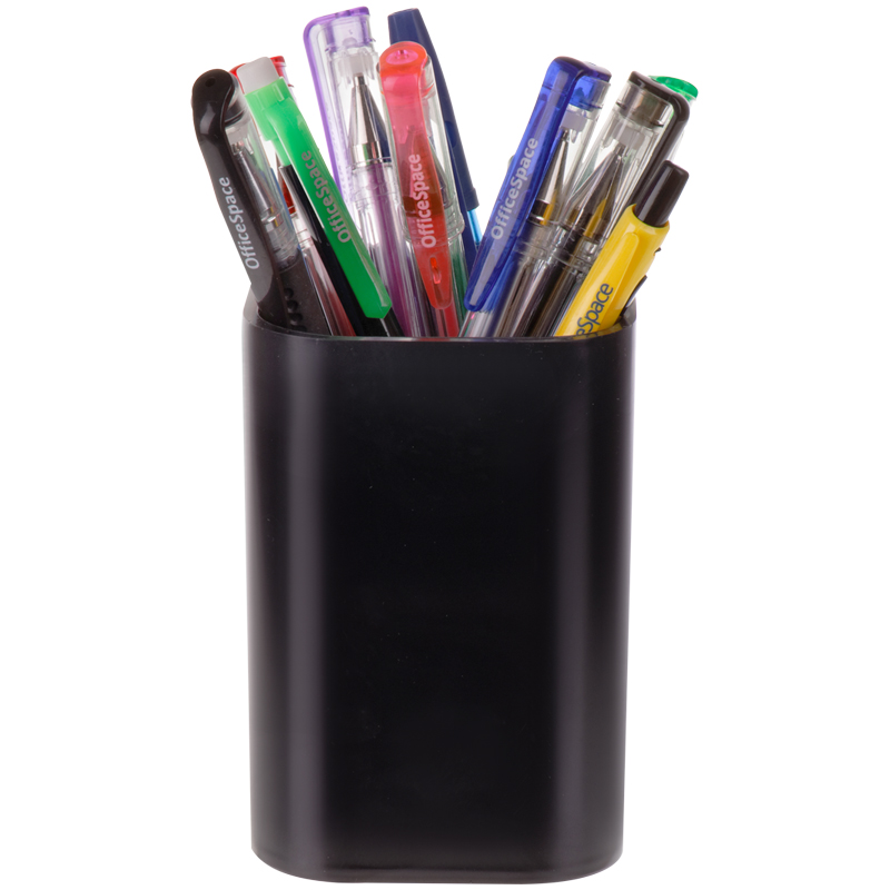 Подставка-стакан OfficeSpace в стильном современном дизайне классического черного цвета для хранения канцелярских принадлежностей. Прочный и устойчивый корпус изготовлен из полистирола.