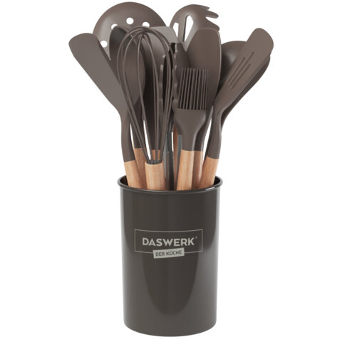 Набор силиконовых кухонных принадлежностей с деревянными ручками 12 в 1, серый, DASWERK, 608194