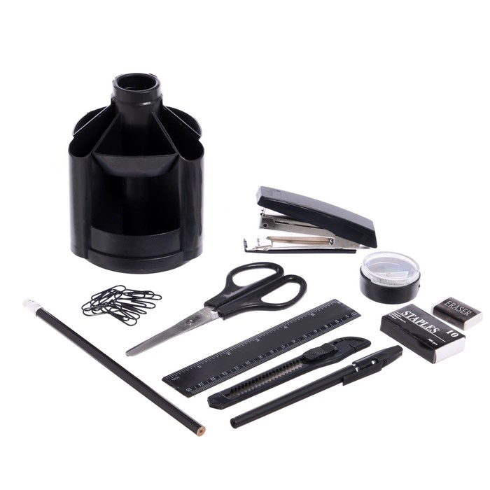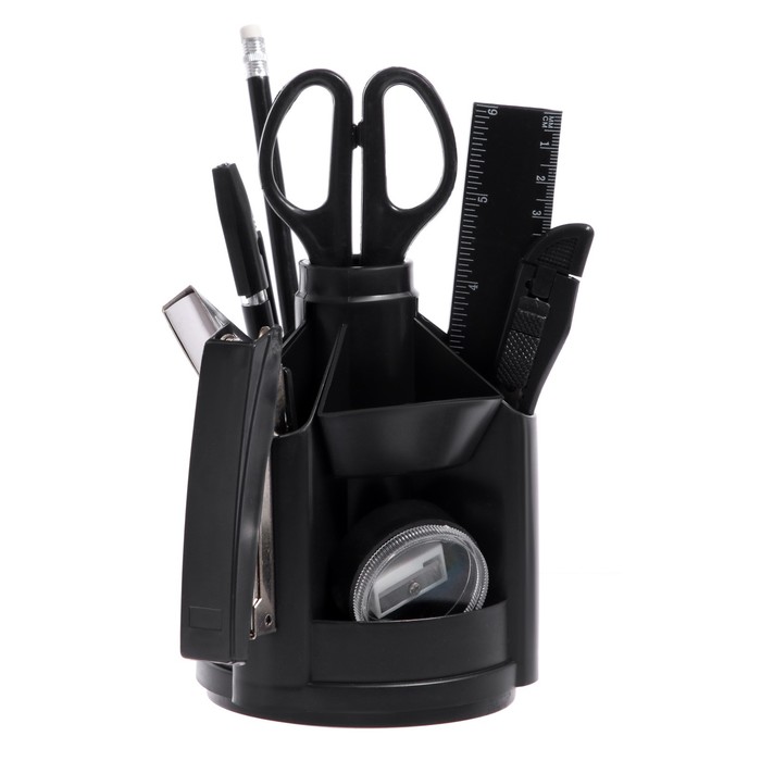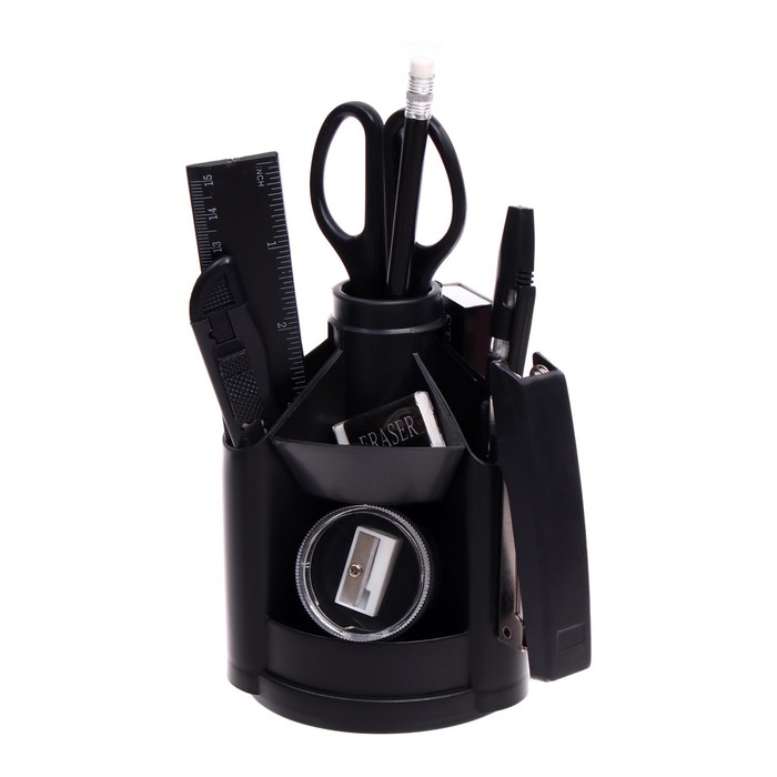 Набор канцелярских принадлежностей СТАММ "MiniDesk", 13 предметов, вращающийся, черный