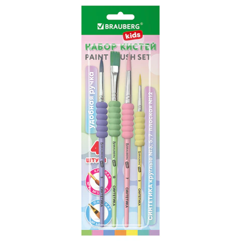 Набор из четырёх кистей разного размера c мягкой EVA вставкой BRAUBERG KIDS позволяет начинающим художникам решать любые творческие задачи в детском саду, школе и дома.