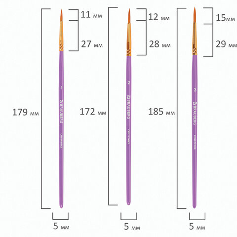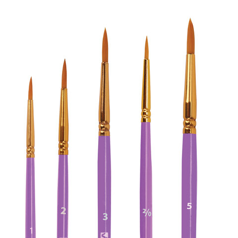 Кисти BRAUBERG PREMIUM, набор 5 шт. (синтетика, круглая № 1, 2, 3, 4, 5), блистер, 201025