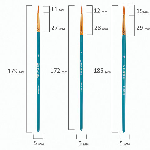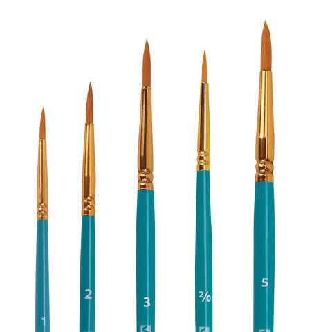 Кисти BRAUBERG PREMIUM, набор 5 шт. (синтетика, круглая № 1, 2, 3, 4, 5), блистер, 201025