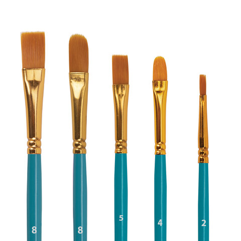 Кисти BRAUBERG PREMIUM, набор 5 шт. (синтетика, круглая № 1, 3, 5, плоская № 5, 8), блистер, 201024