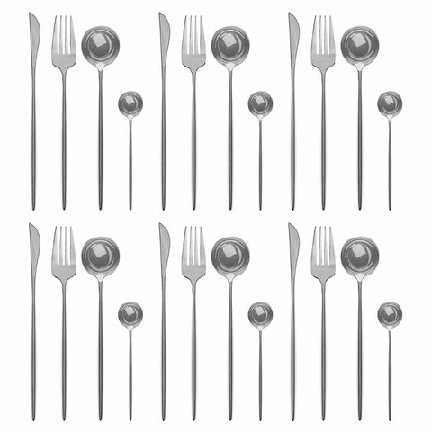 В набор входят 6 столовых ложек, 6 вилок, 6 ножей и 6 чайных ложек, что позволяет использовать приборы для употребления разных блюд.