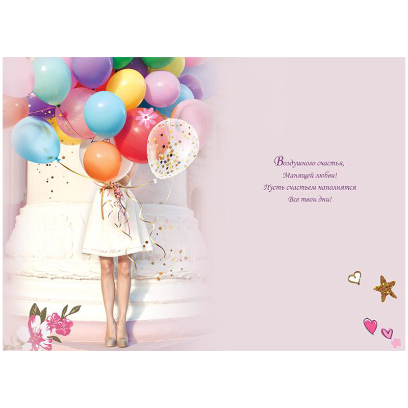 Открытка с готовым текстом - поздравлением внутри. На лицевой стороне располагается надпись «В твой День рождения». Фасовка по 10 шт. Размер изделия: 126*182 мм