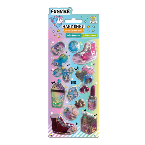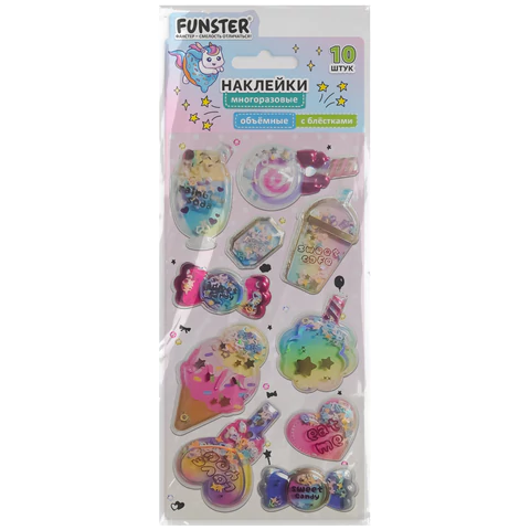 Объёмные наклейки FUNSTER - идеальный выбор для творчества! Эти очаровательные наклейки в ярких дизайнах ассорти поднимут настроение и добавят красок в повседневность.