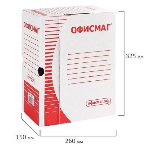 Предназначен для документов формата А4 и вмещает до 1400 листов. Высота короба составляет 325 мм, ширина - 260 мм, а ширина корешка - 150 мм. Имеет повышенную прочность за счет использования качественного микрогофрокартона. Спокойный белый цвет архивного короба не будет отвлекать от рабочего процесса.