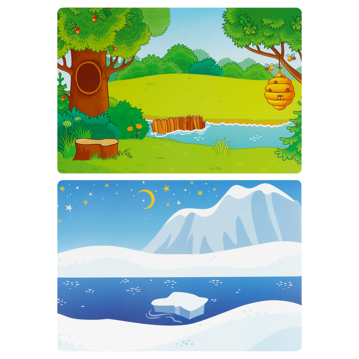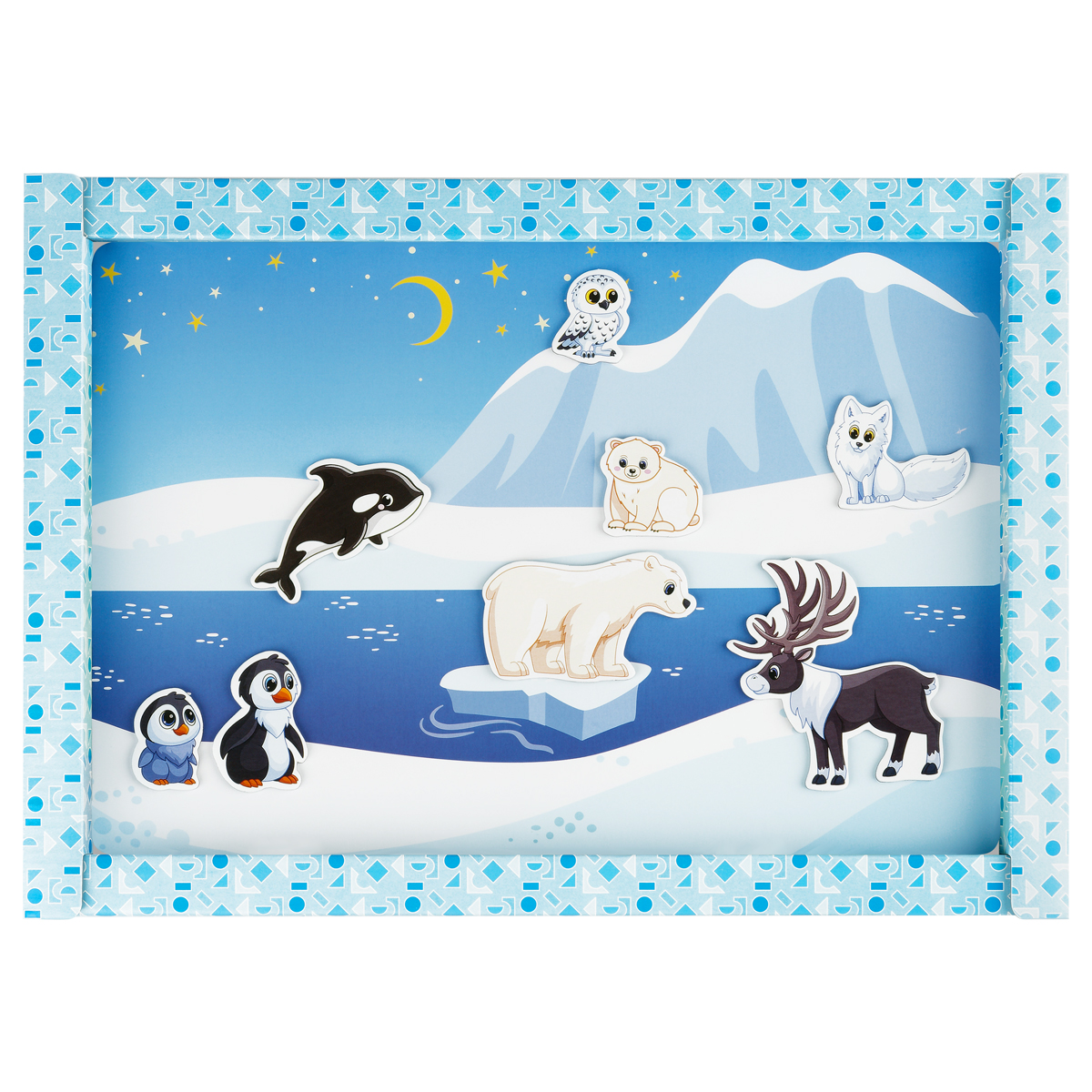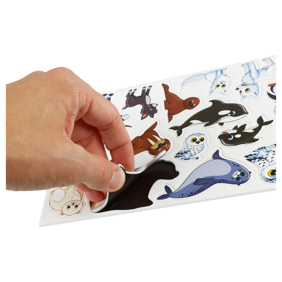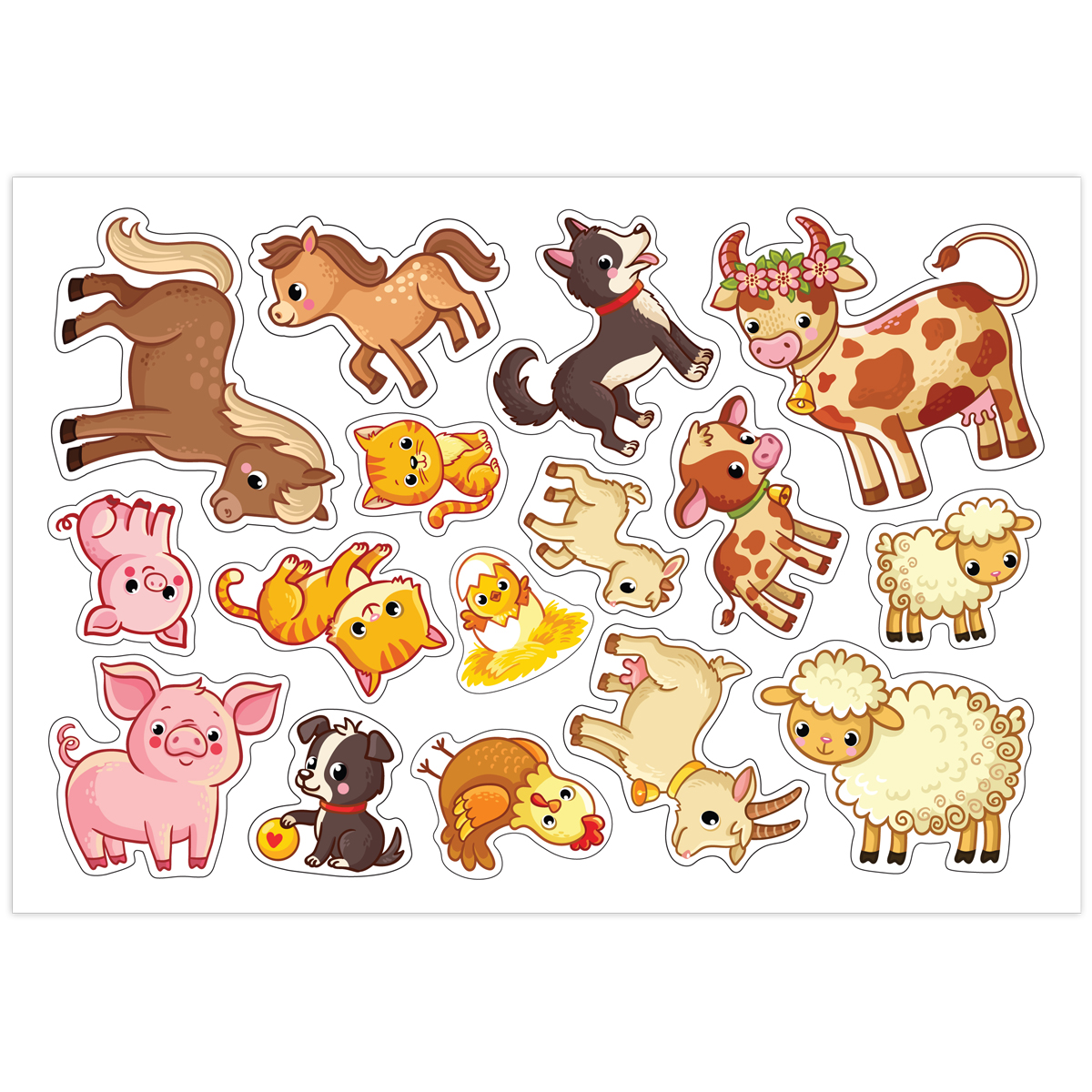 Комплект магнитов познакомит с тем, какие бывают птицы и животные на ферме, дикой природе, жарких странах и холодных широтах.