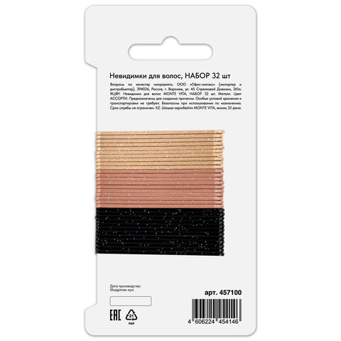 Шпильки для волос НАБОР 60 шт, 4,5 см, 5 см, 6 см, в кейсе, чёрный MONTE VITA 457104