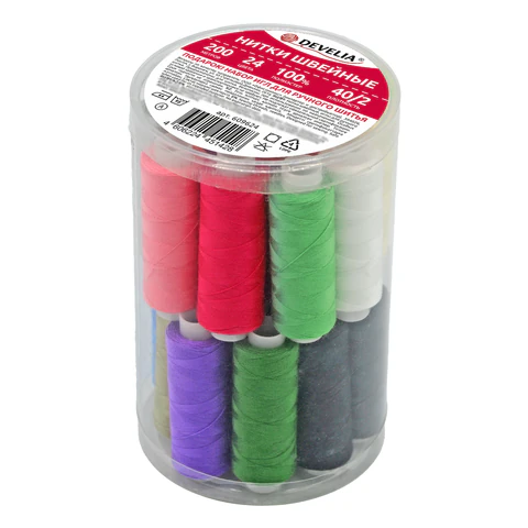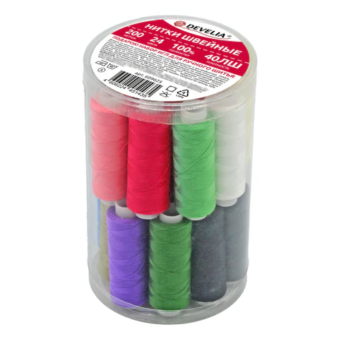 Нитки швейные 40/2 200 м, полиэстер, НАБОР 40 цветов, DEVELIA (Девелиа), 609628