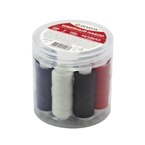 Швейные нитки 40/2 5000 ярдов, НАБОР 4 цвета, белый, серый, синий, черный, DEVELIA, 665619