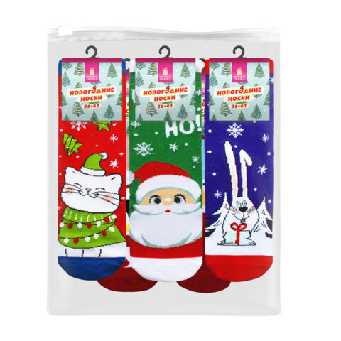 Размер: 36-41. Состав: хлопок, полиэстер, эластан. Упакованы в пакет с зиплоком. В комплекте 5 пар носков с изображением зимних персонажей.