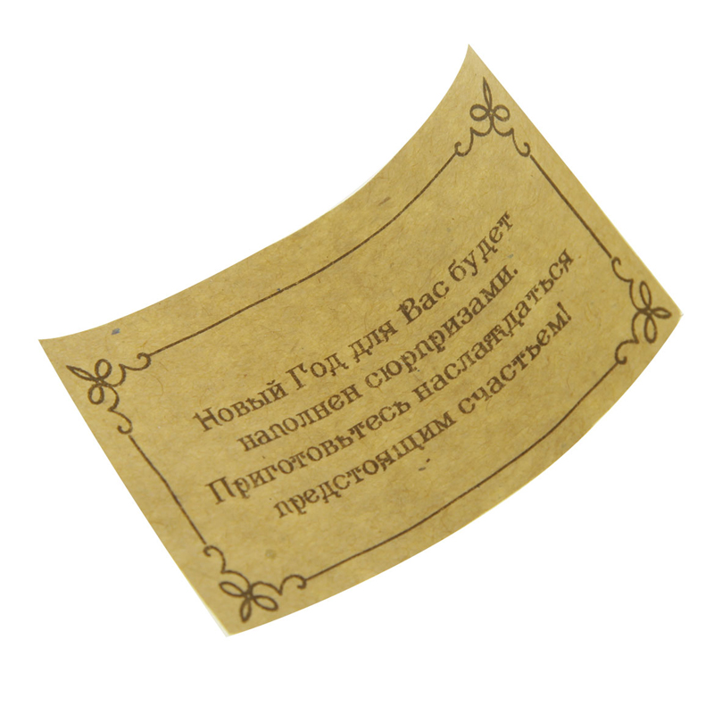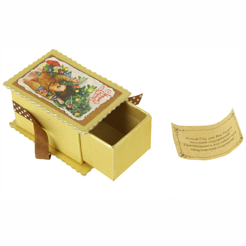 Подарочная коробка Предсказание из мелованного, ламинированного, негофрированного картона плотностью 1100 г/м2, с полноцветным декоративным рисунком на внутренней и наружной части, с наполнителем из резаной крафт-бумаги и бумажным свитком-предсказанием