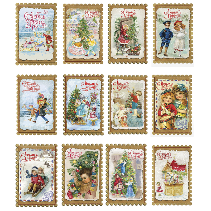 Новый год. Свеча столбик с рисунком "Новогодние мотивы" 50*80 мм, Часы