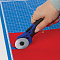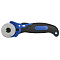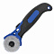 Острое вращающееся лезвие диаметром 45 мм обеспечивает точный раскрой, а регулировочный винт изменяет степень вращения лезвия: от свободного вращения до полной фиксации.