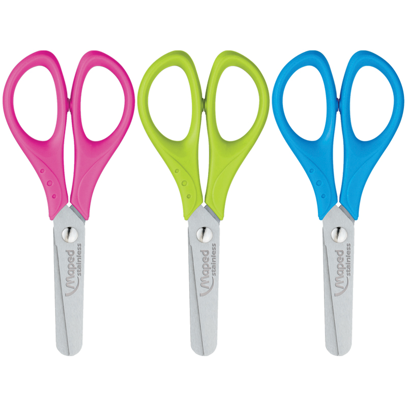 Ножницы имеют форму, наиболее подходящую для маленьких ручек. Безопасные закругленные края лезвий