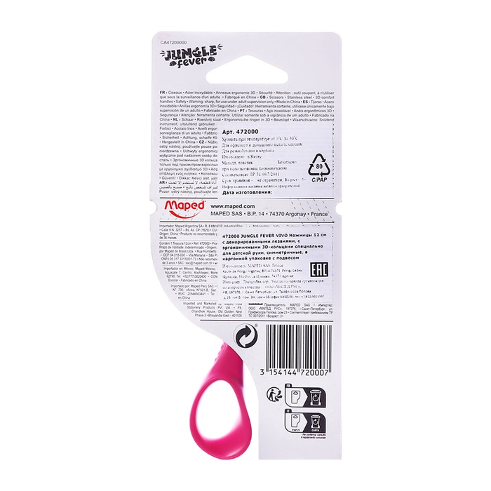 Ножницы 11,8см пластиковые ручки, закругленные концы лезвий, Зайчик розовый CALLIGRATA