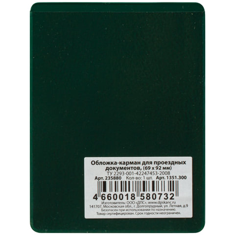 Обложка для документов, карт, пропусков. Предохраняет вложение от преждевременного изнашивания. Поставляется в нескольких вариантах цвета (без возможности выбора).