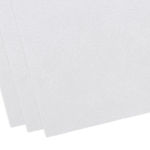 Выполнены из прочного, износостойкого картона плотностью 230 г/м2. Тиснение под кожу. Подходят для документов формата А4. 100 штук в комплекте. Цвет - белый.