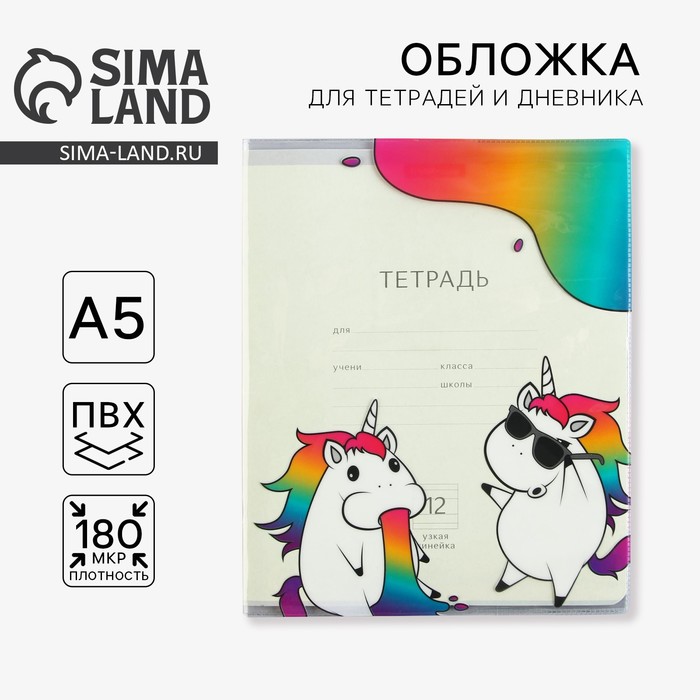 Обложка для тетрадей и школьного дневника «Единороги», 34,7 х 21,1 см