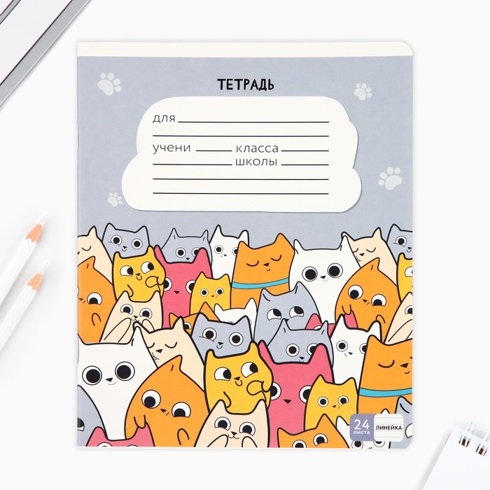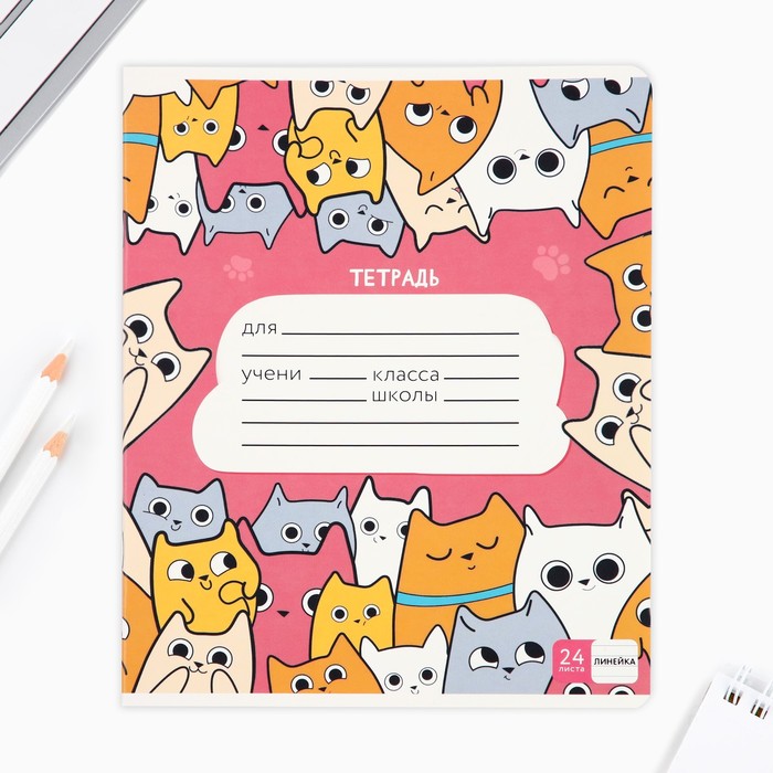 Тетрадь А5, 48 л на спирали, внутренний блок №1 МИКС «Аниме котики»