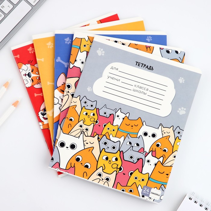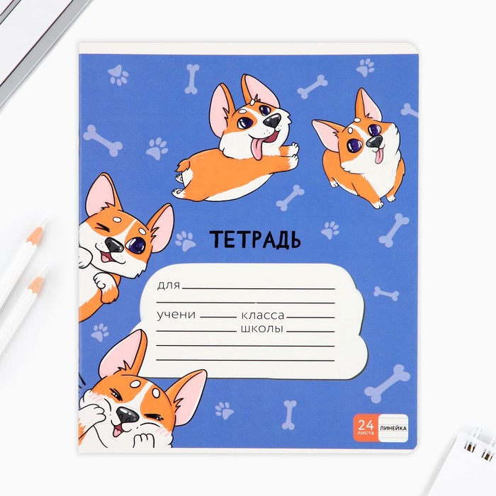 Тетрадь А5, 48 л на спирали, внутренний блок №1 МИКС «Корги»