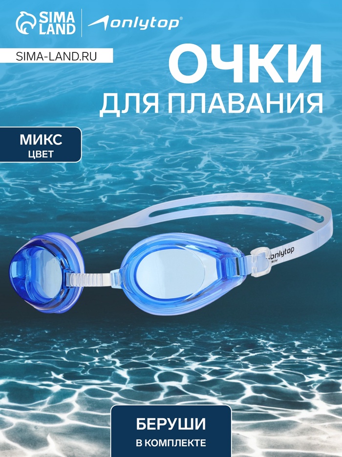 Очки для плавания ONLYTOP, беруши, цвета МИКС