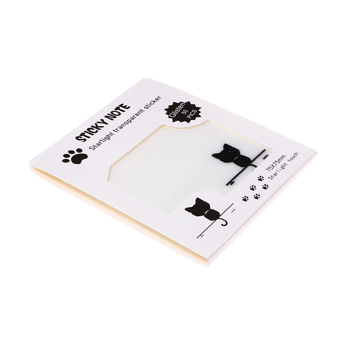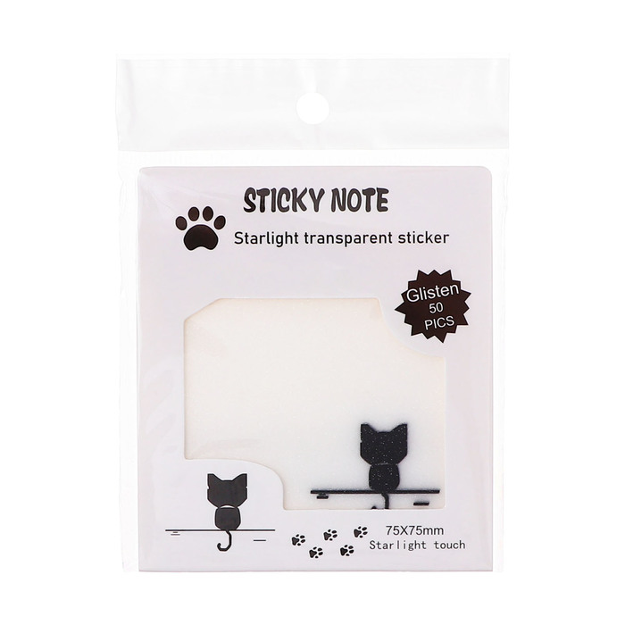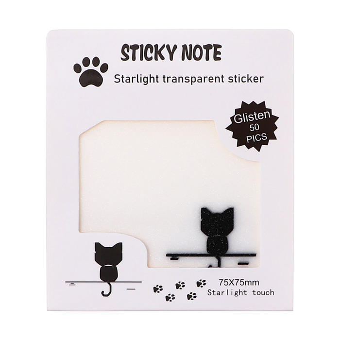 Блок с липким краем 75мм х 75мм 50л пластик прозрачные с блестками Кошачья лапка