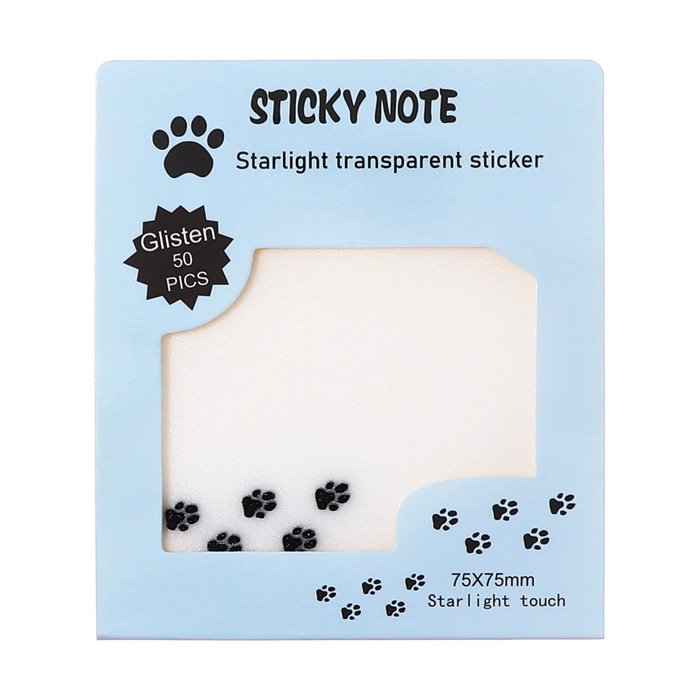 Блок с липким краем 75мм х 75мм 50л пластик прозрачные с блестками Лапки