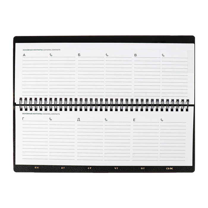 Планинг датированный 2025 года, 64 листа, Attomex. Arkona, твердая обложка бумвинил с поролоном, блок 70 г/м2, чёрный, 294 х 142мм