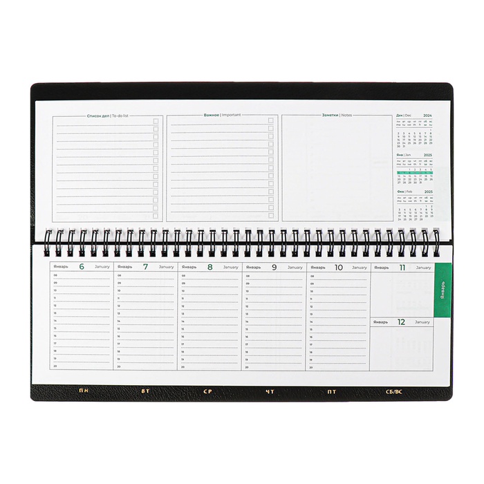 Планинг датированный 2025 года, ESCALADA, 76 листов, на гребне, интегральная обложка, искуственная кожа, тиснение фольгой, блок 70, чёрный, 310 х115мм