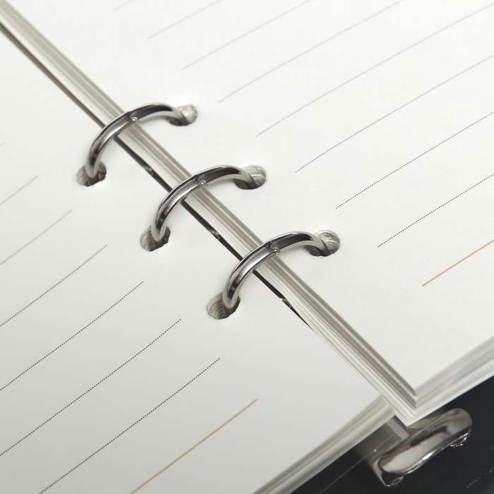 Органайзер на кольцах А5, 80 листов, кожзам, линия, с хлястиком, черный