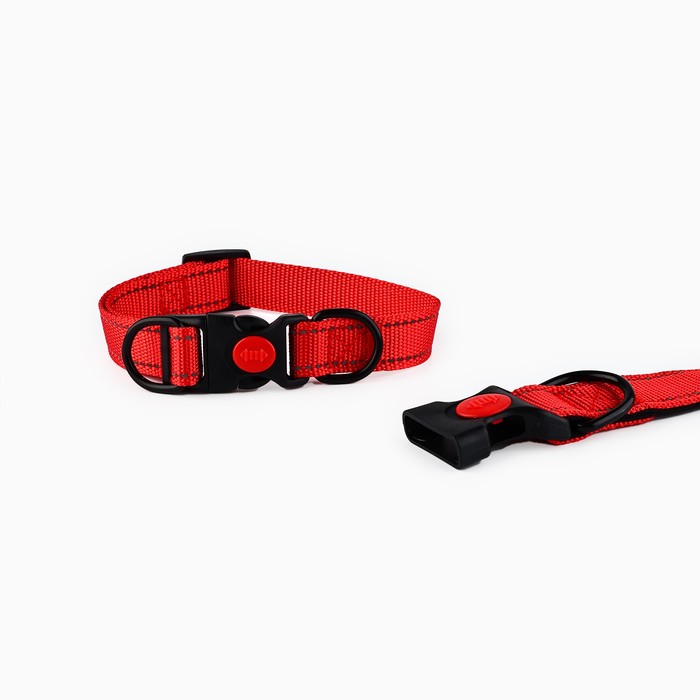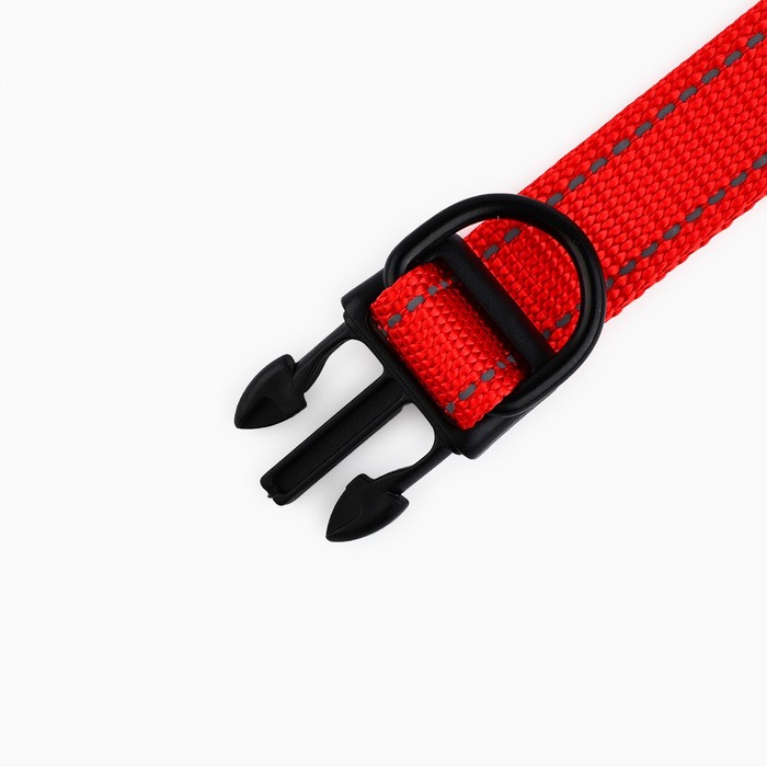 Ошейник, 35×1.5 см, с подкладом и светоотражающей лентой, кожа, чёрный