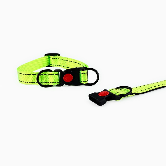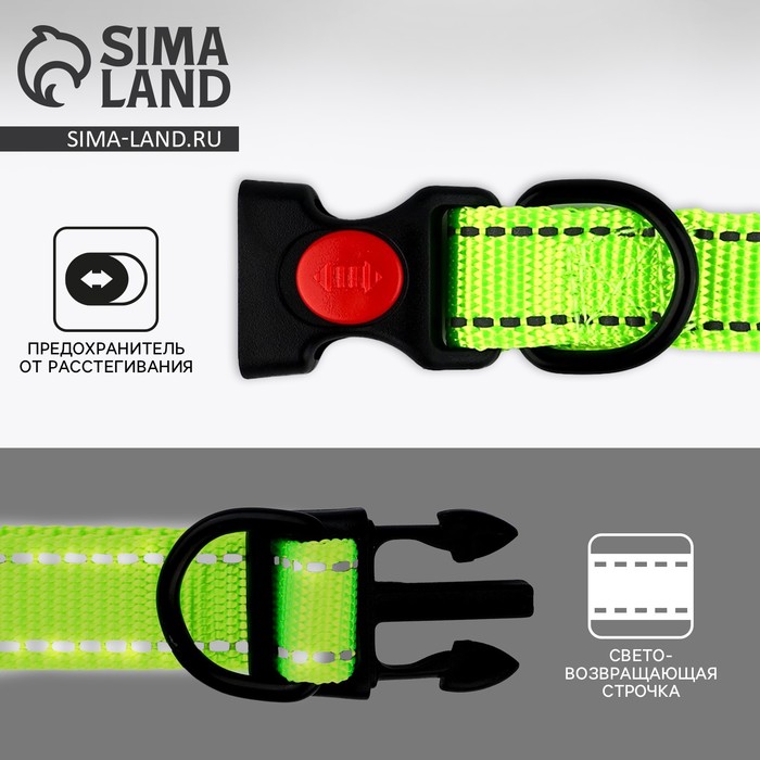 Ошейник, 35×1.5 см, с подкладом и светоотражающей лентой, кожа, чёрный