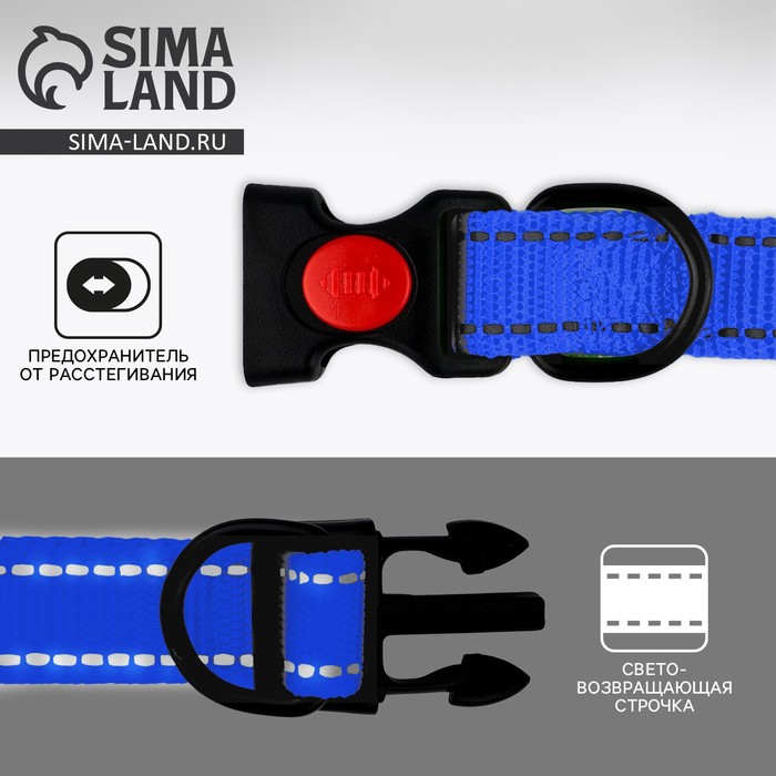 Ошейник с подсветкой размер М, ОШ 40-48 х 2,5 см, 3 режима свечения голубой