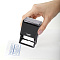 Размер текстовой платы 60х40 мм. Модель оснащена кнопками блокировки и кнопочным механизмом замены подушки. В комплект входят: подушка, скотч для крепления клише, специальный шаблон для размещения на нем оттиска.