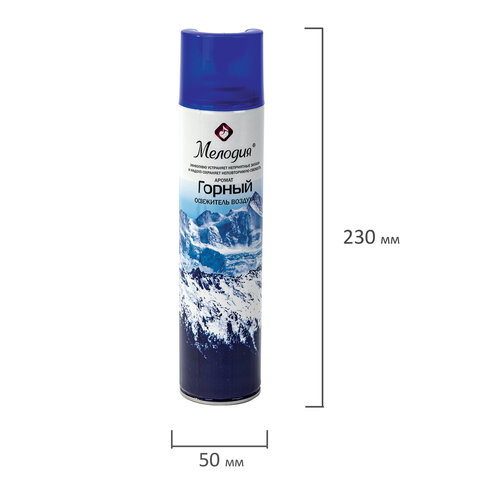 Освежитель воздуха МЕЛОДИЯ "Горный" быстро и эффективно устраняет неприятные запахи и освежает воздух в жилых и бытовых помещениях. Имеет приятный стойкий аромат, который надолго наполнит помещение свежестью.