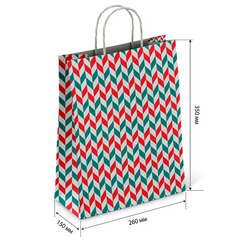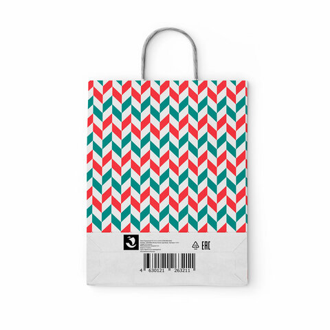 Крафт пакет бумажный Геометрия 26х15х35см с кручеными ручками, плотность 100 гр/м2, б, 112306