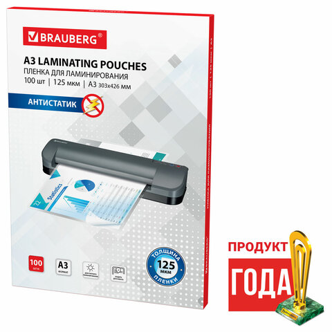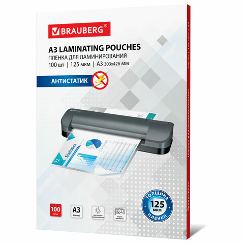 Пленка для ламинирования BRAUBERG формата А3 (303х425 мм) имеет уникальный состав: полиэтилентерефталат (PET), этиленвинилацетат (EVA), полиэтилен (LDPE). Промежуточный слой полиэтилена (LDPE) выступает как связующий элемент между слоями PET и EVA, служит дополнительной защитой от вероятного вытекания клея из-под пленки при ламинировании. Полиэтилен (PE) придает пакетам прочность эластичность и износостойкость. Глянцевое покрытие пленки способствует сохранению и максимальной передаче цвета ламинируемого изображения.