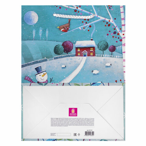 Пакет подарочный (1шт) новогодний 26х13х32см "Winter Wonderland", фольга, ассорти, ЗОЛОТАЯ СКАЗКА, 592443